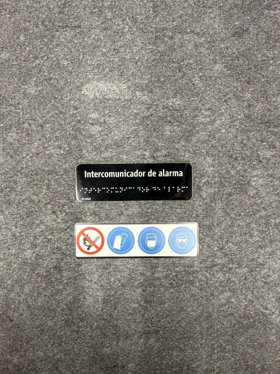 Gravoply™ Láser permite hacer tanto grabado láser CO2 como por fresa. Se trata de un material bi-capa que garantiza sus características tanto en interior como en exterior, como así certifica el laboratorio SGS.